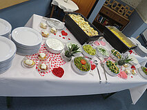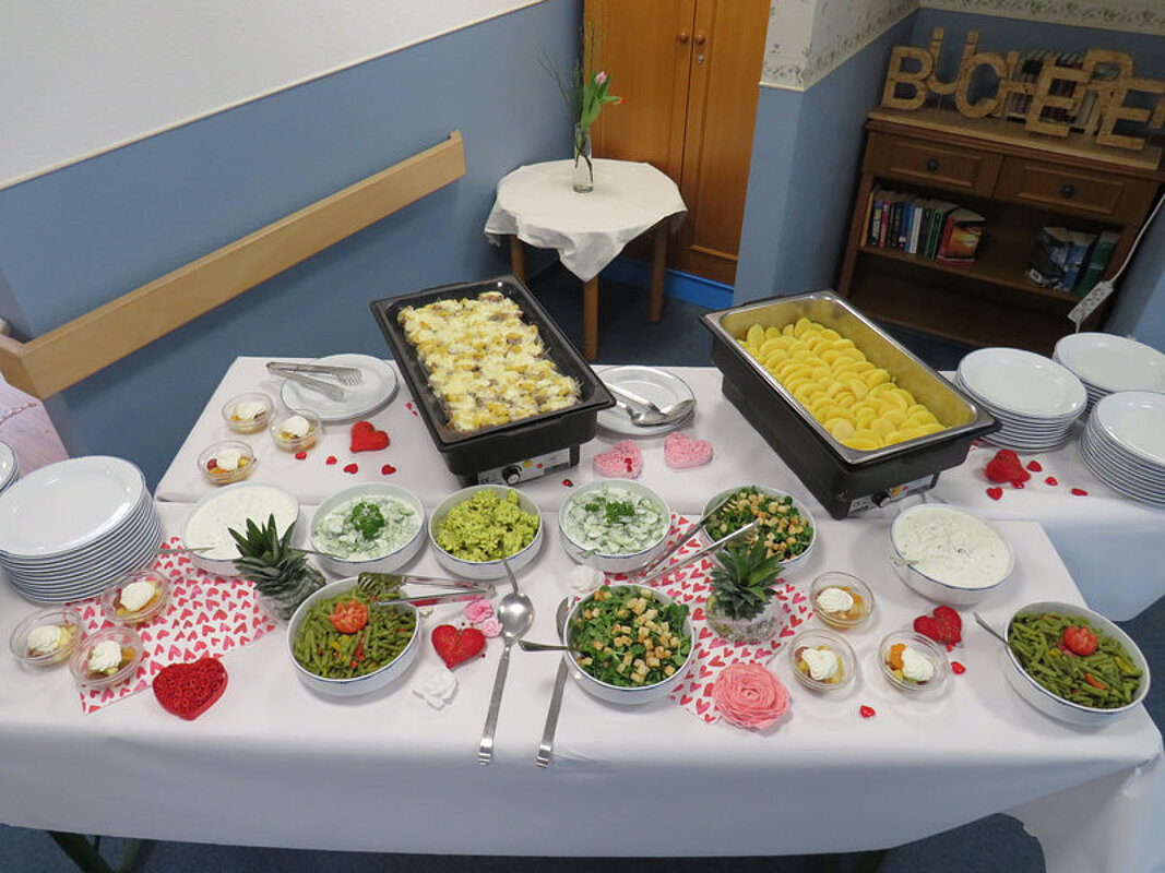 Am 09. Januar sollte unser Neujahrsempfang stattfinden. Aufgrund des Schneechaos an diesem Tag haben wir die Veranstaltung abgesagt. Wir machten uns stattdessen einen gemütlichen Nachmitta mit Musik aus der Box, leckeren asiatischen Häppchen und einem Gläschen Sekt. Geehrt und mit einem Präsentkorb bedacht wurde zusätzlich ein Bewohner, welcher seit bereits 20 Jahren in unserer Einrichtung lebt.